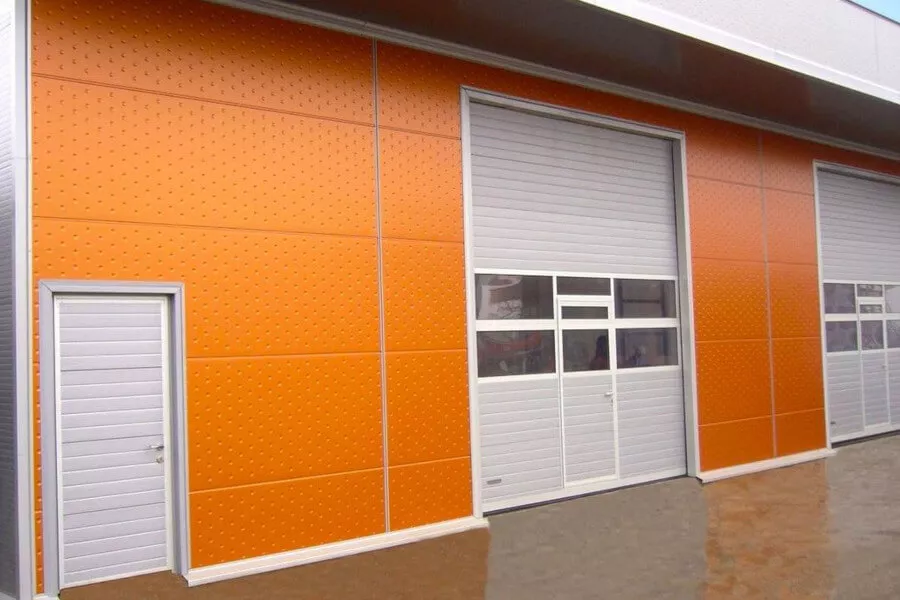 Отличается повышенными показателями прочности, которые достигаются благодаря значительной толщине (45 мм) и двухслойному полимерному покрытию. Окрашивается в любой цвет из палитры RAL, производится с разными вариантами рисунков (гофр, микроволна, филенка).