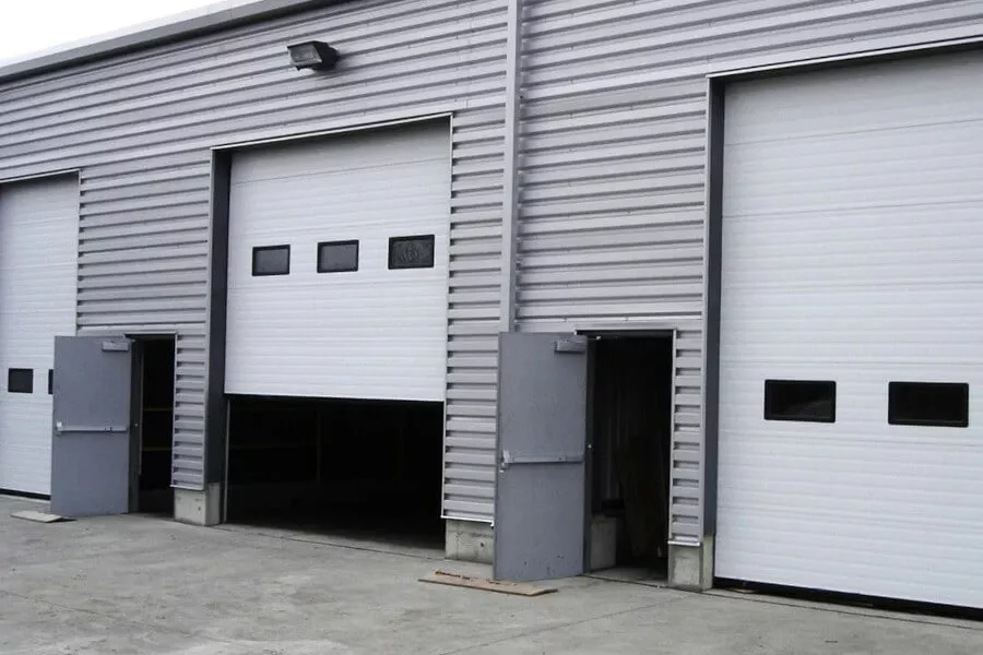 Промышленные ворота для склада можно снабдить калиткой, с которой отпадает необходимость открывать всю конструкцию, когда необходимо войти или выйти из помещения.